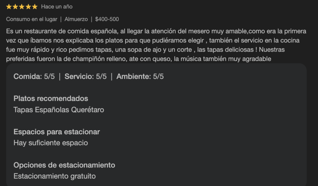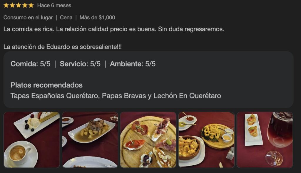 Esto es lo que dicen quienes ya han probado nuestra comida española en Querétaro: